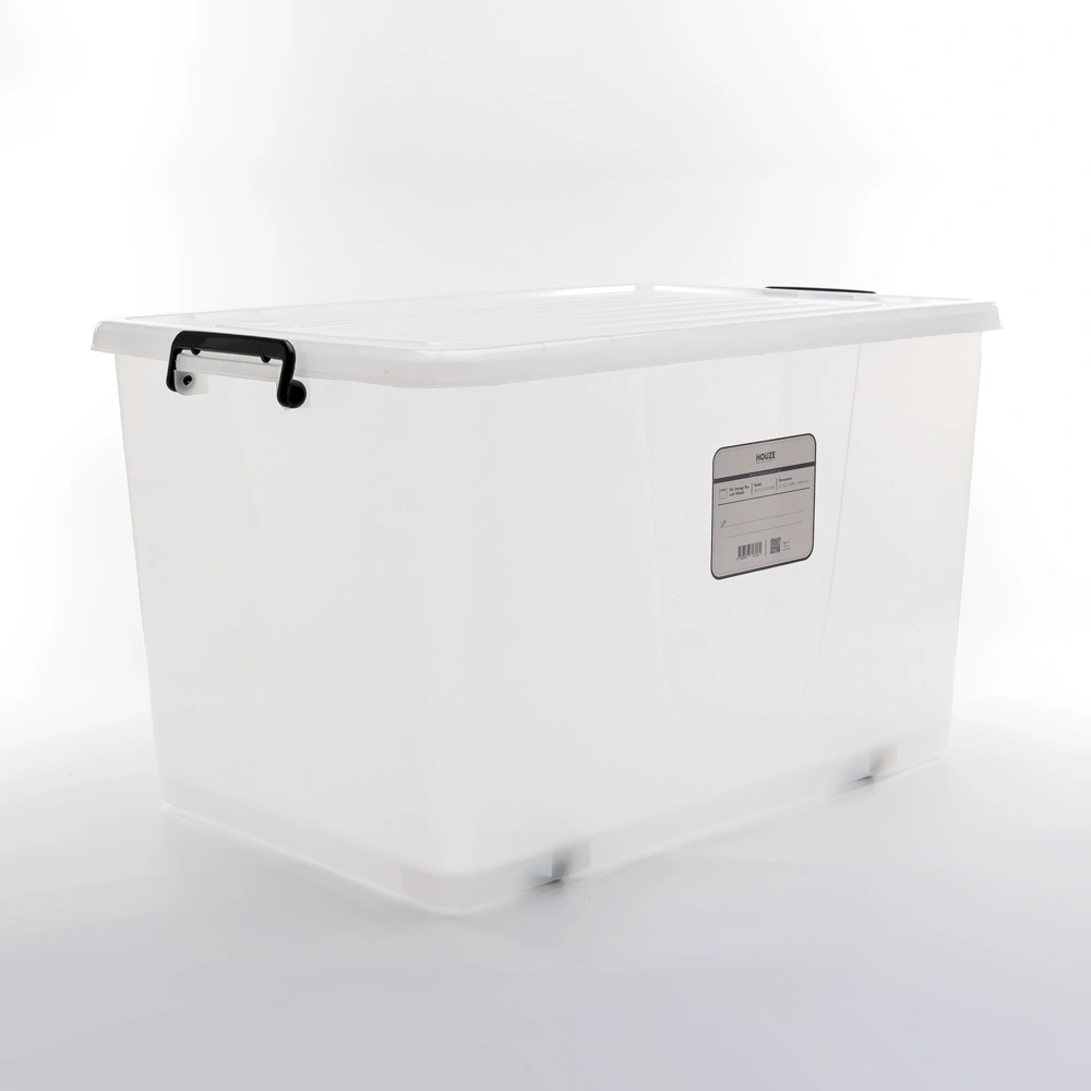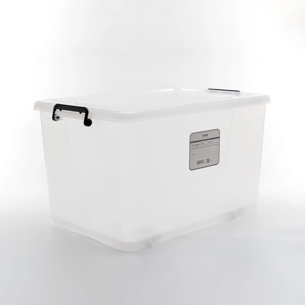 Step away from conventional storage options and embrace a world where style and functionality merge. With a transparent body. peeking inside is a breeze; no need to lift the lid! Accentuated by a chic black handle and wheels. this underbed box offers flair without compromising utility. Its snap-lock side handles secure your valuables. while the reinforced bottom promises unparalleled stacking stability.